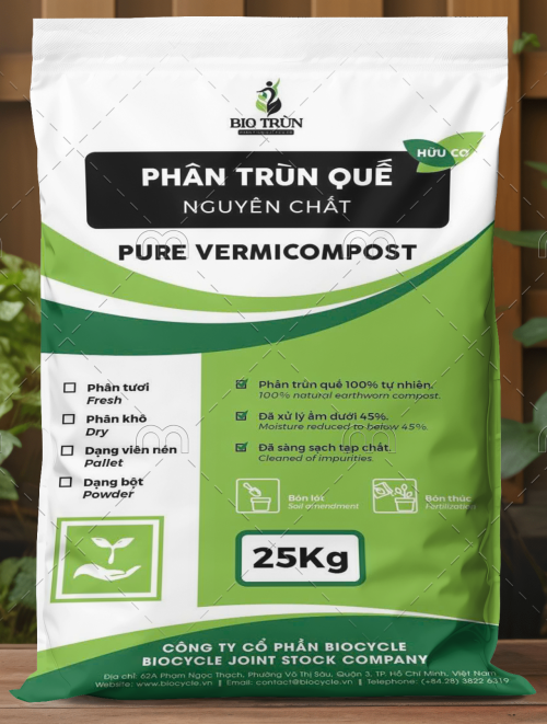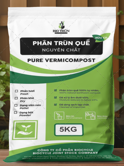 Phân trùn quế BIO TRÙN là sản phẩm hữu cơ cao cấp được tạo ra từ quá trình xử lý chất thải chăn nuôi bằng công nghệ sinh học và hệ thống nuôi trùn quế hiện đại. Đây là nguồn dinh dưỡng hoàn hảo cho cây trồng, góp phần xây dựng nền nông nghiệp bền vững.